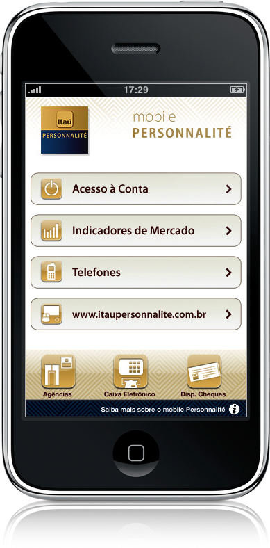 Poucos dias depois de tornar seu iPhone Banking um aplicativo oficial e nativo para iPhones e iPods touch, o Banco Itaú lança na App Store o Personnalité, seu app direcionado aos clientes Itaú Personnalité.