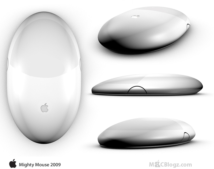 Hoje, o MacBlogz publicou representações (renderings) tridimensionais do que seria o novo Apple Mighty Mouse Multi-Touch, com um perfil mais fino e ergonômico que o atual e uma case feita de alumínio.