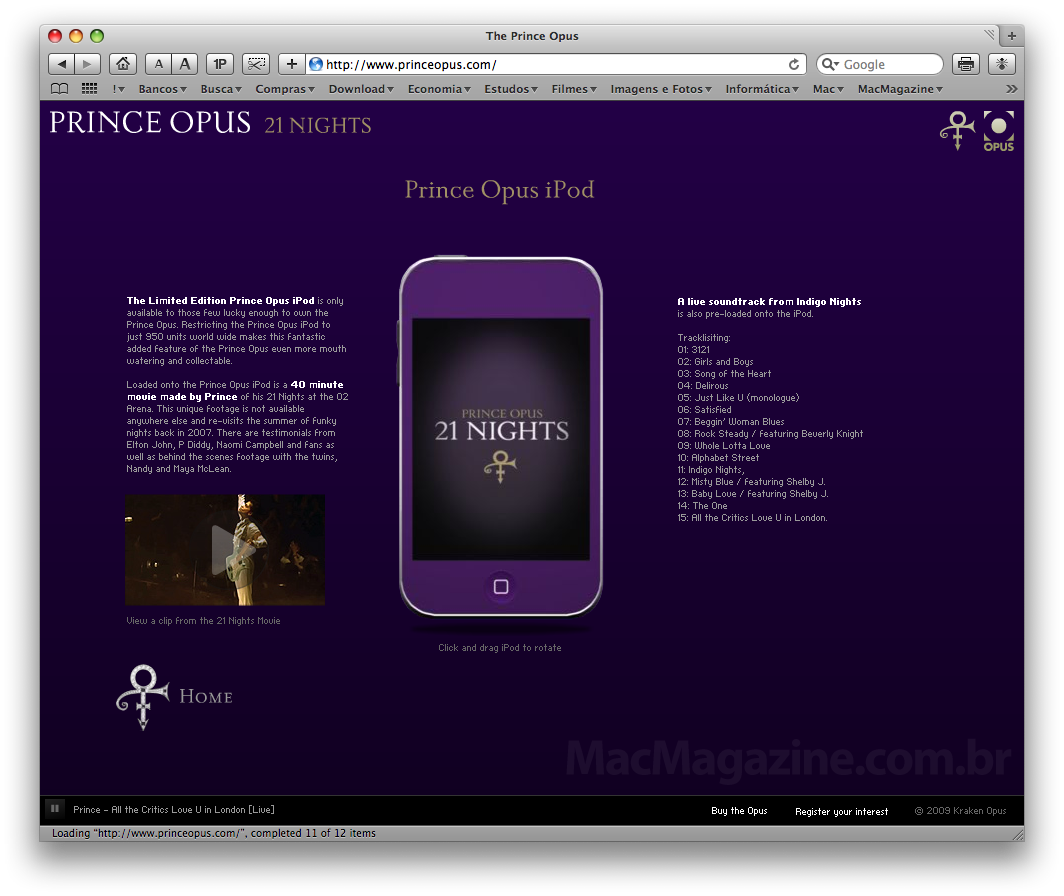 O músico Prince acaba de elevar sua estratégia de monetização um nível acima, com uma edição especial e limitada Opus iPod 21 Nights custando nada mais nada menos que US$2.100.