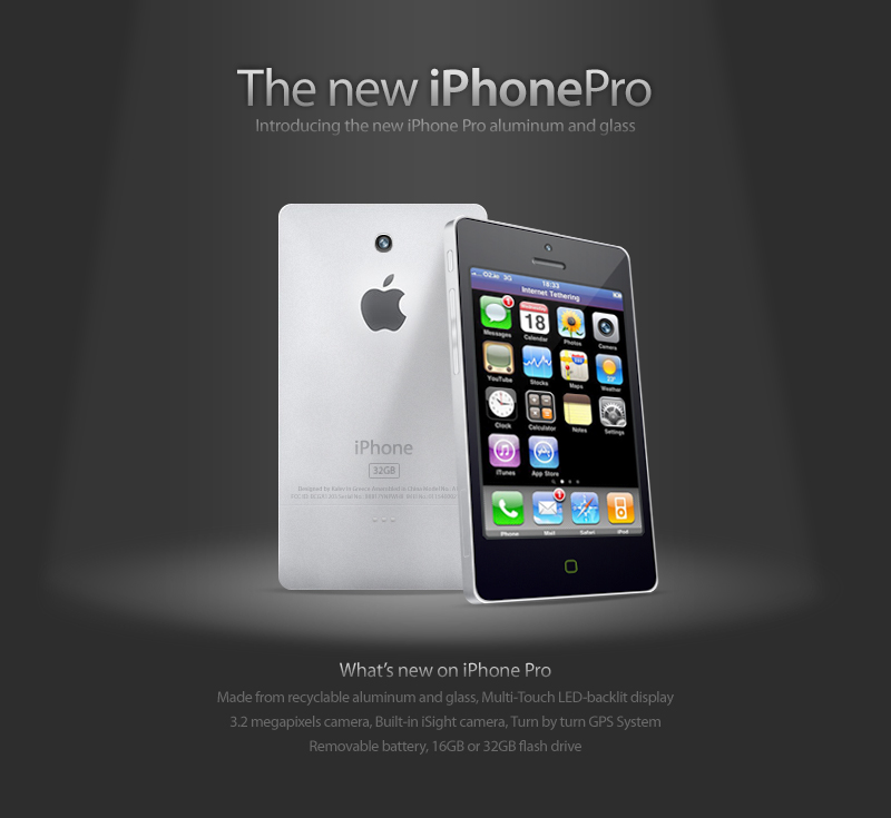 Se a Apple está trabalhando em ipods unibody, o mesmo se aplica a iPhones. Foi pensando nisso que o designer gráfico Kostas Alevizopoulos criou este mockup de um iPhonePro em monobloco de alumínio: